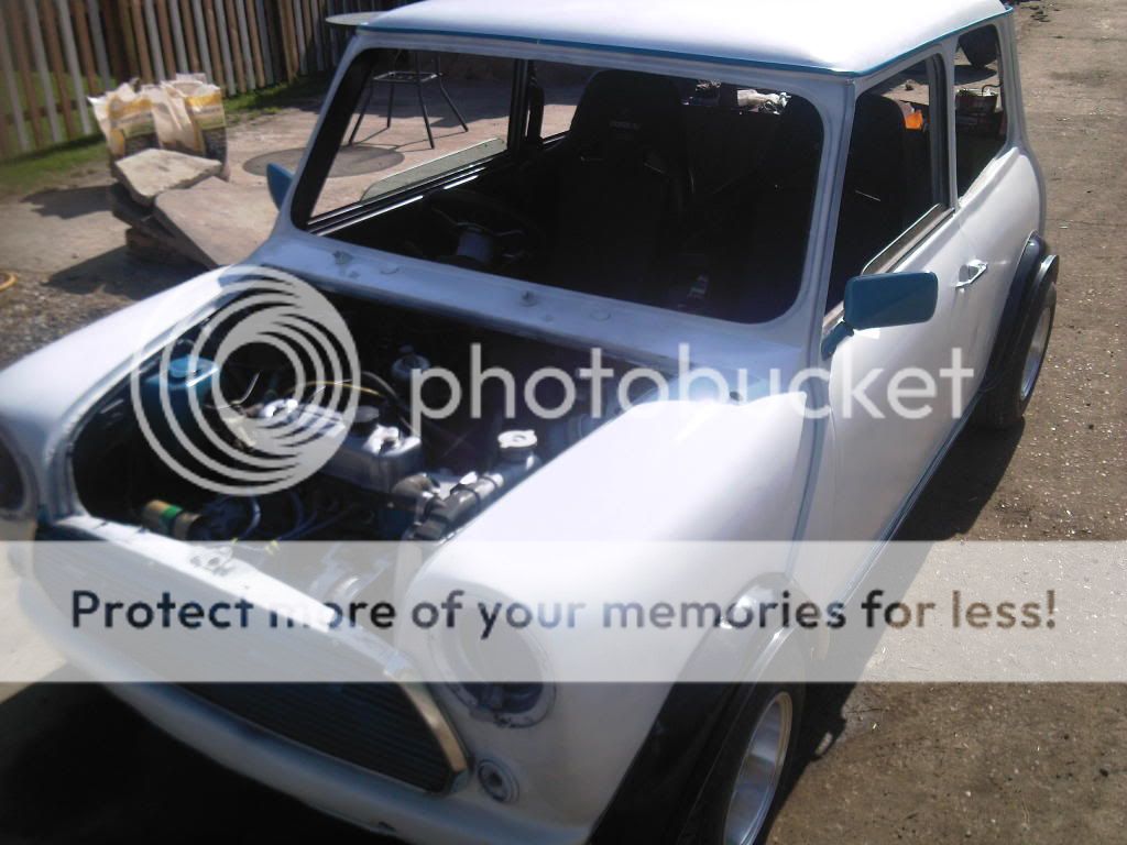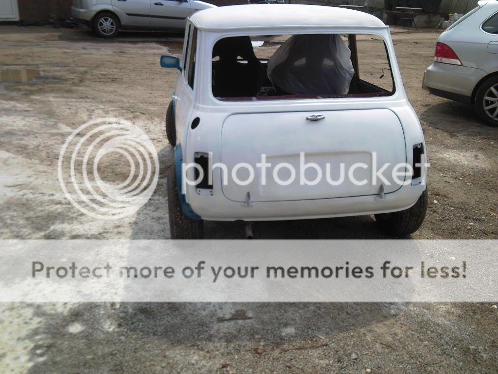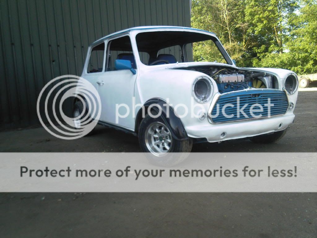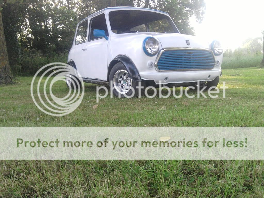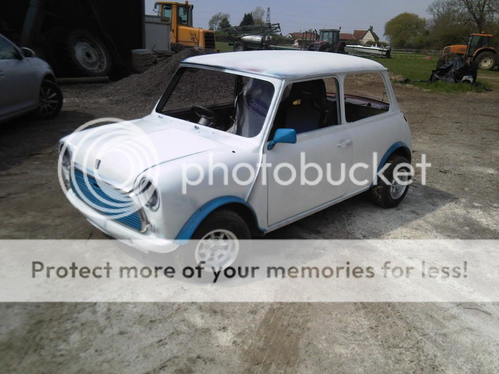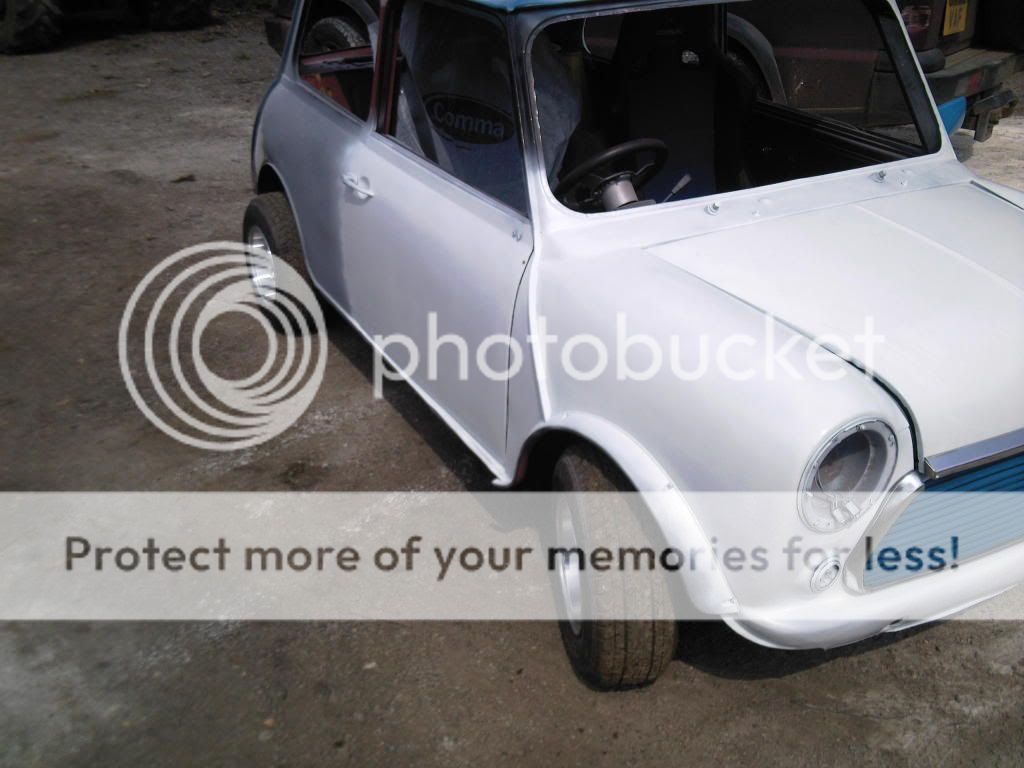 na it aint the finished white coat but it is just going to be a standard gloss white forgot to mention im having blue clubman strips done the door but with 998 cc insted of 1275gt an im having blue squares on the roof Drop A Gear An Floor It |