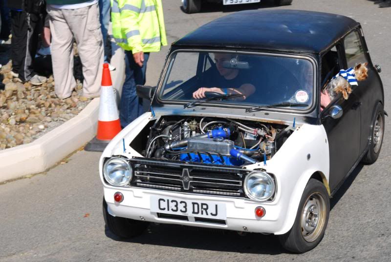Used to be one of the Union Jack Minis featured in last month's Mini Mag. Got de-stickered after the bonnet was driven over... True, then Liam drove it into a bollard leaving a viewing point at the ring last month, and shortened it by an inch! Has he had it jigged out again? I thought it was close on a write off.... Mr. Prawn, the friendly Crustacean- slowly making steps towards forced induction. |