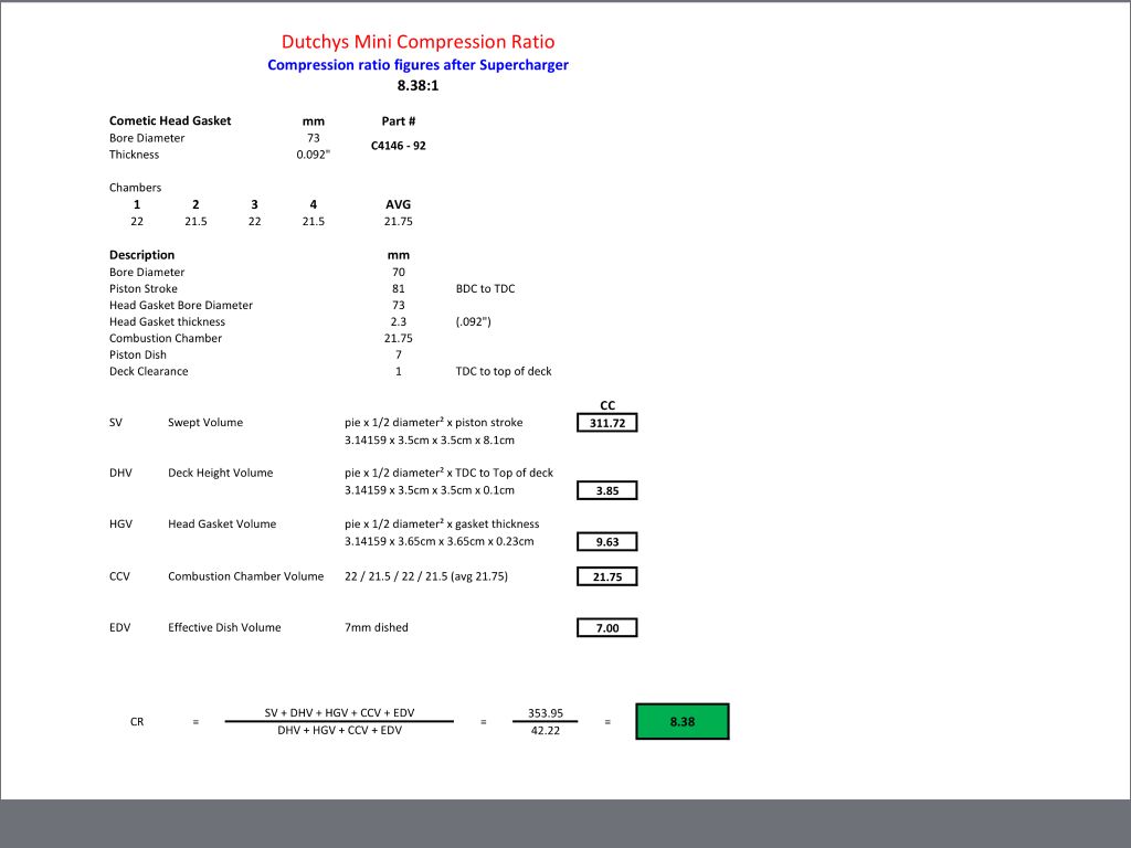 I am not sure as to why your gasket keeps blowing out but I can show you how I calculated my CR in the photo attached. I too run a suck through S/C with injection and also used a cometic head gasket (Pt# C4146-92) to lower the CR to 8:38 according to my formula and measurements. Mine is a 1275..originally an SPI though.
