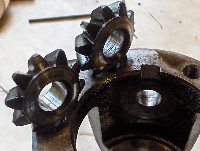 well bit of an update here , after various nightmares on the diff front and the same prob being there when using the higher power , i decided to get a 4 pin diff and see if i could get it in there withuot taking the engine out .. well the good news is yes you can and you can also get the pinion out with the engine in , so you can change diff ratio which im doing . the bad news is , i was thinking i could sell my comp diff pin new everything single pin diff that was coming out .... so i looked at the diff after getting it out and thought hmmm ,should that diff pin be rotating when i spin the gears I DONT THINK SO !!!!!!! yep . the pin was welded to the planet gear ,and had eaten the roll pin !! it was freely spinning ,and how far i was from a self dissasembling diff case i shudder to think ....P.H.E.W.!! here are some pictures this pin a genuine competition pin ,,with all new gears and bushes etc,run on valvolene vr1 20/50 ,and has done about 3 k miles ..enjoy