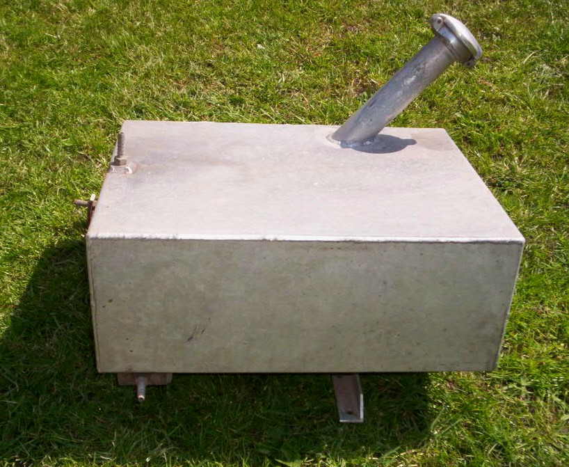This tank was fitted central in the boot, It's 4 gallon capacity. I cant show it fitted as I now have a flat boot floor and it fixes to the rear bulkhead and the wheel well floor