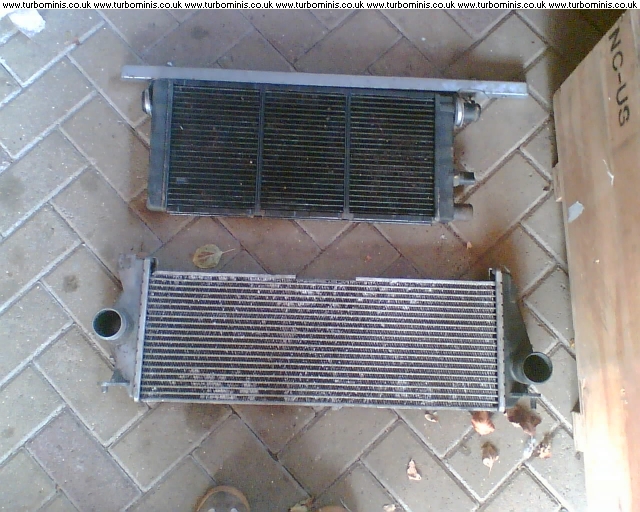 i've got a rad an intercooler the same, never did get them fitted but kept them as a project later on. if you look at jims car, they move the front end a bit further forward. you wouldnt notice and gives vitle space.