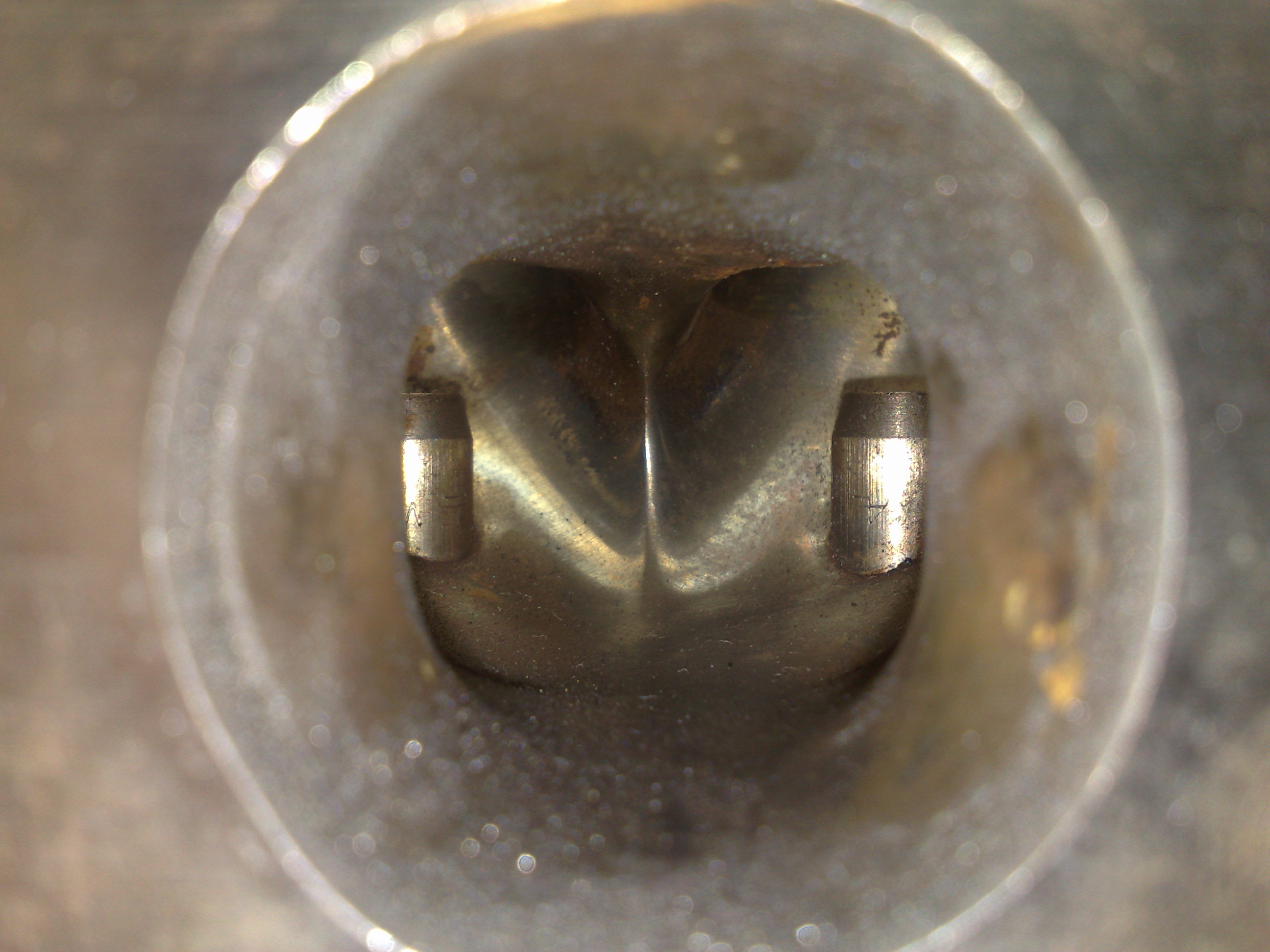 the seats from this chamber (damaged one ) are too close the valve didn't drop of the stem, the other valve have pushed it , look at it closely three others are ok but number two is a big fish in the bocal |