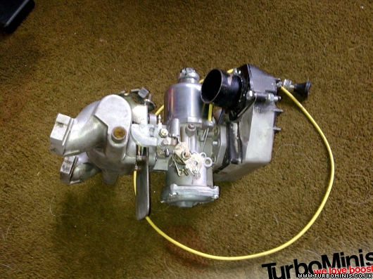 Well I've move the throttle over to the other side & tweaked the choke (I think it was Tom who came up with the choke idea years ago) it looks like I'm going to need a half inch carb spacer to stop the throttle linkage hitting the carb & a Nic plenum to stop the IC pipes fouling on the throttle linkage. Still it lets me run the TPS which I need for the ECU.