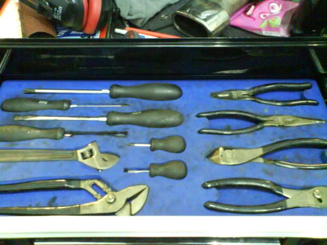 in work my tools are layed out like that ^^ each tool has a specific slot in a tray or foam so i can tell at a glance whats missing. at home i fuck everything in a big bucket. turbo 16v k-series 11.9@118.9 :)
