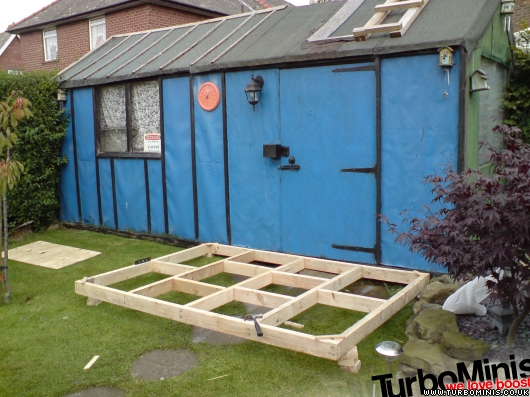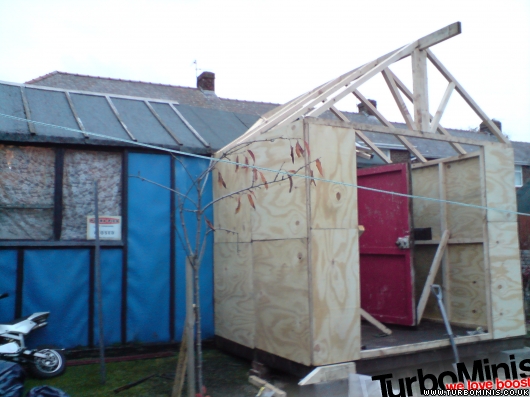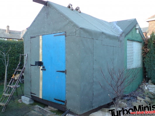 Ive not been on turbominis recently as ive been busy, well in dec building a shed extension so i can work on my mini under cover, earlier gazebo attempts blew away! Managed to get loads of plywood from work for nowt so thought why not