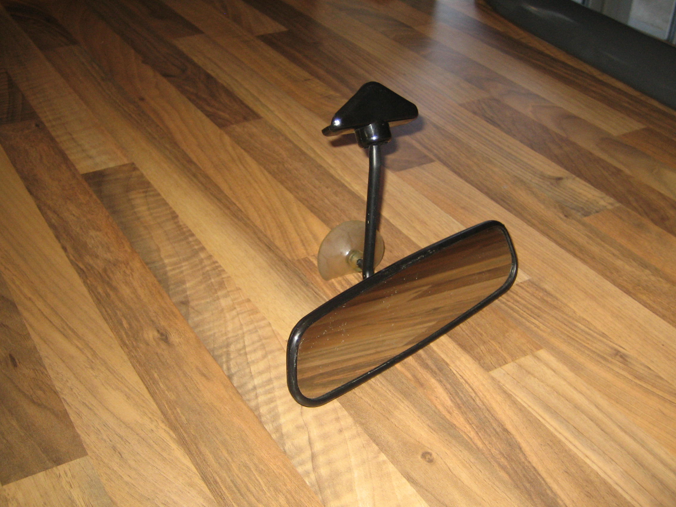 Picture of rear view mirrror as requested by Ben. Please excuse the dust on the glass and the sucker is just folded over it hasnt been cut.