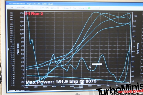 Not a mini I am afraid. I have helping my mate put together a Clan (grp shell with Imp running gear). Today it went on the rollers for the first time. It was the first time I (or the rolling road operator) had mapped using megasquirt so it was quite a morning. In the end I drove the car and did the tuning and he operated the rolling road. It is quite scary to start with. I wimped out when we upped the boost, convinced it was wheel spinning or slipping the clutch. It turned out it was just more powerful than we expected and was just accelerating the rollers bloody fast.
