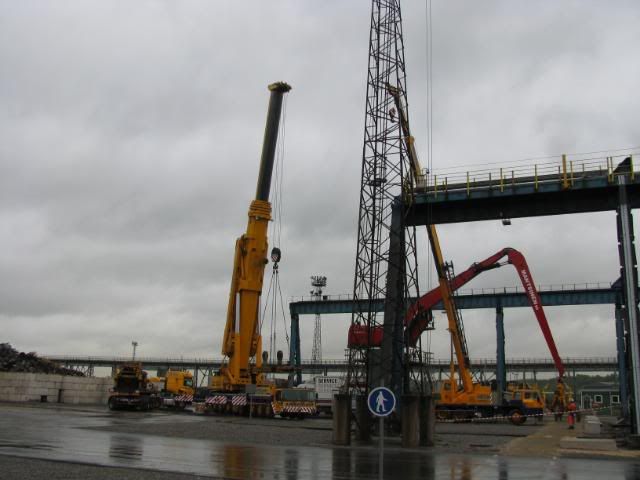I was playing with cranes at work the other day. The small yellow one is a measly 25 tonner. The big yellow one however is a monster, 500 tonner, comes with 3 artic trucks and 8 men.