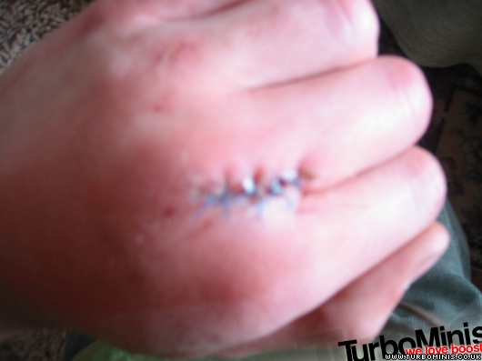 was on a peice of macheenary at work, some cardboard got stuck so i went to pull it out lost grip and sliced it on a perfectly positiond peice of metal :( i cant move the tip of my ring finger my self anymore so i geuss i damaged somthing there =/. as for accident pron well after this i think my left hand side of my body is cursed lol, broken leg, messed up wrist, dislocated sholder about 5 times broken foot list goes on lol Drives