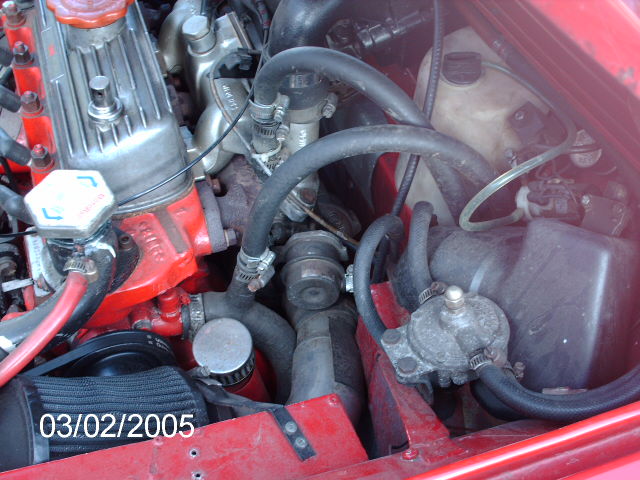 sorry tom missed that it has a small intercooler mounted below the front mounted golf rad . |