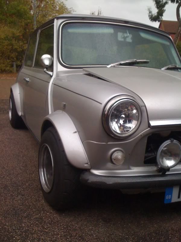 outside its got carbon bonnet (not fitted) and carbon bumpers and 4 of carls finest mini special split rims with yoko a032rs and the standard silver bullet arches
