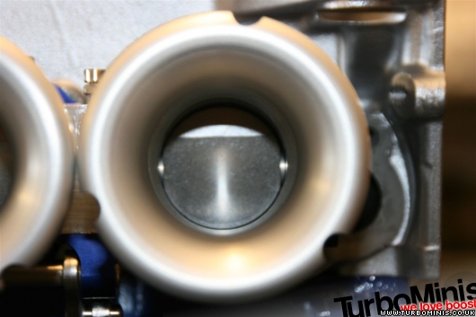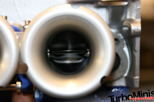 Looking to push the little K as far as it'll go we have designed some "direct to head" bespoke throttle bodies for the K conversion. 38mm plates but there are no shafts in these bodies so effective area is up to the equivalant of a conventional 40mm body with a shaft in it. We have downdrafted them by 5 degrees to allow a little extra clearance to the slam panel and the use of a full one piece filter.