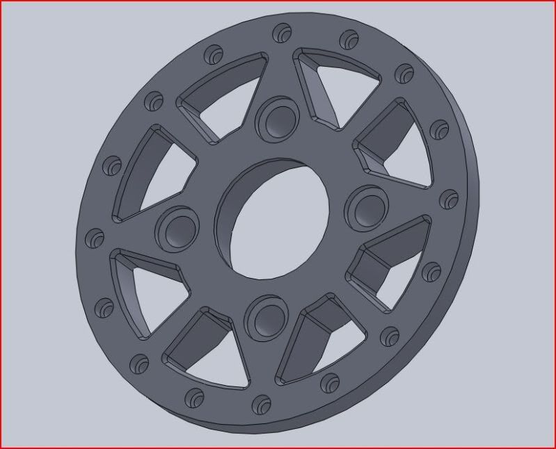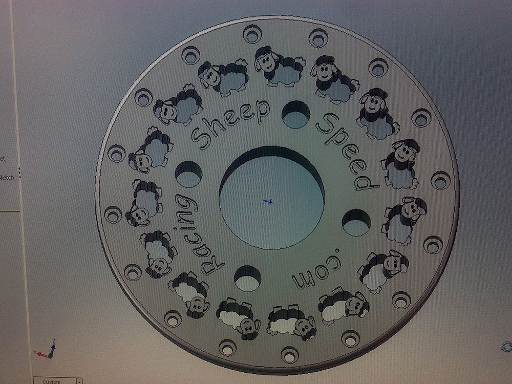 what designs have you got for your wheels so far? I've done some, but I bet none of yours have sheep on, lol Unfortunately not a sheep in sight on mine! So far all i've got are some rough sketches in Google Sketchup Pro, but i have "aquired" a working copy of solidworks 2010 today so will be exporting the .dwg's into that tonight to get them sorted properly. I shall also be drawing up the mig's inlet manifold injector bosses if the old boy gives me his 2d drawings