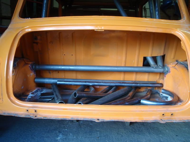 I intend to weld in a bar between the two rear arches, on the inside of the cabin, more as a harness bar than anything else. I was going to drill a hole in each arch for the tube to pass a little through for better support On 26th Oct, 2004 TurboDave16v said: