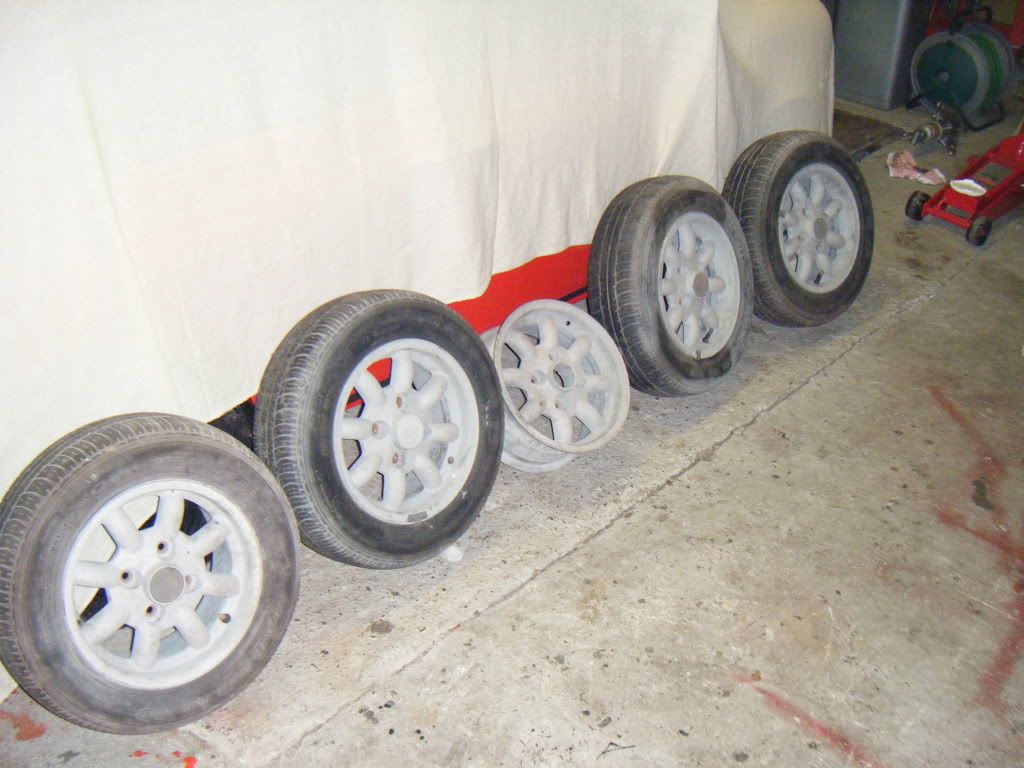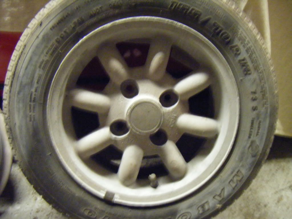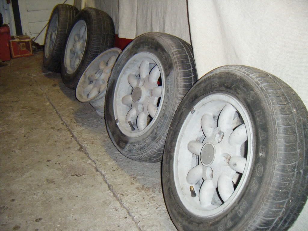 Yep got some. They are 'mistral' alloys. Look just like minilites. They are sandblasted though as I was gonna get em chromed for the missus. £60. Thets what I paid for em but I'd let em go for £50. |