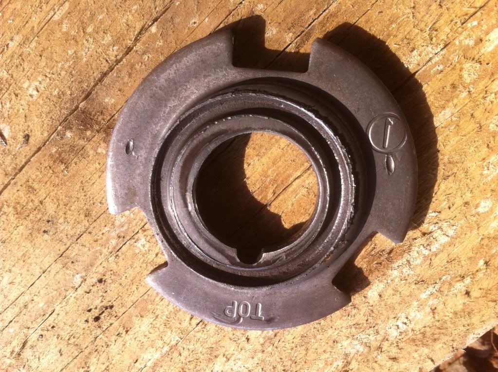 Something isn't right there, the wear is off centre on the plate, so the bearing can't be running true to the flywheel.