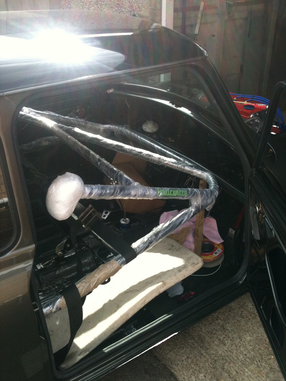 I have put roll cages into minis before but none with a Harness bar. Its a Roll centre cage and im really struggling to get it in. I cant get the ratchet straps on the back legs because the Harness bar is in the way, and thats how id usually do it.
