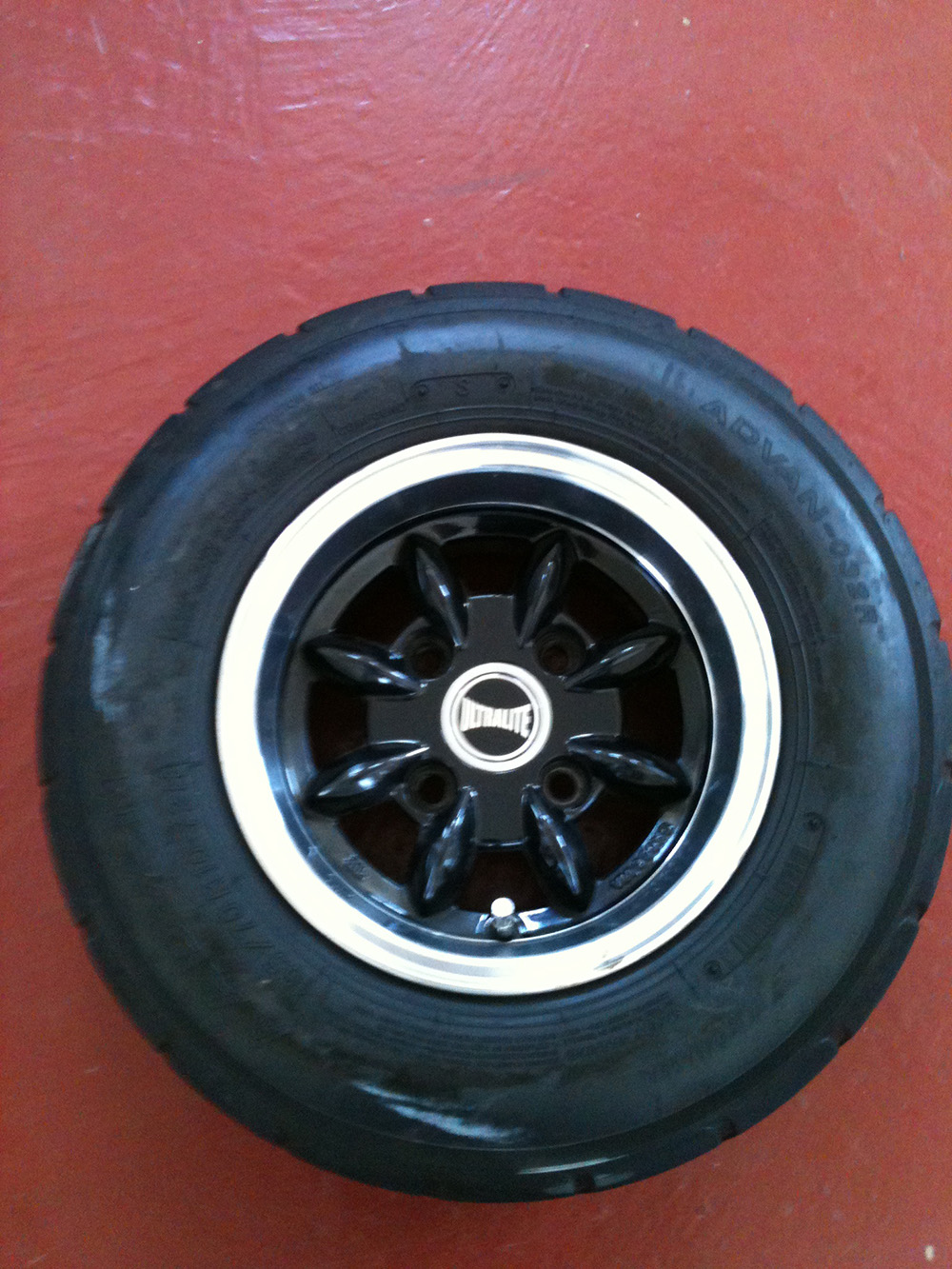 I have for sale 4 Black with a chrome outer lip deep dish Ultralites. Great condition.