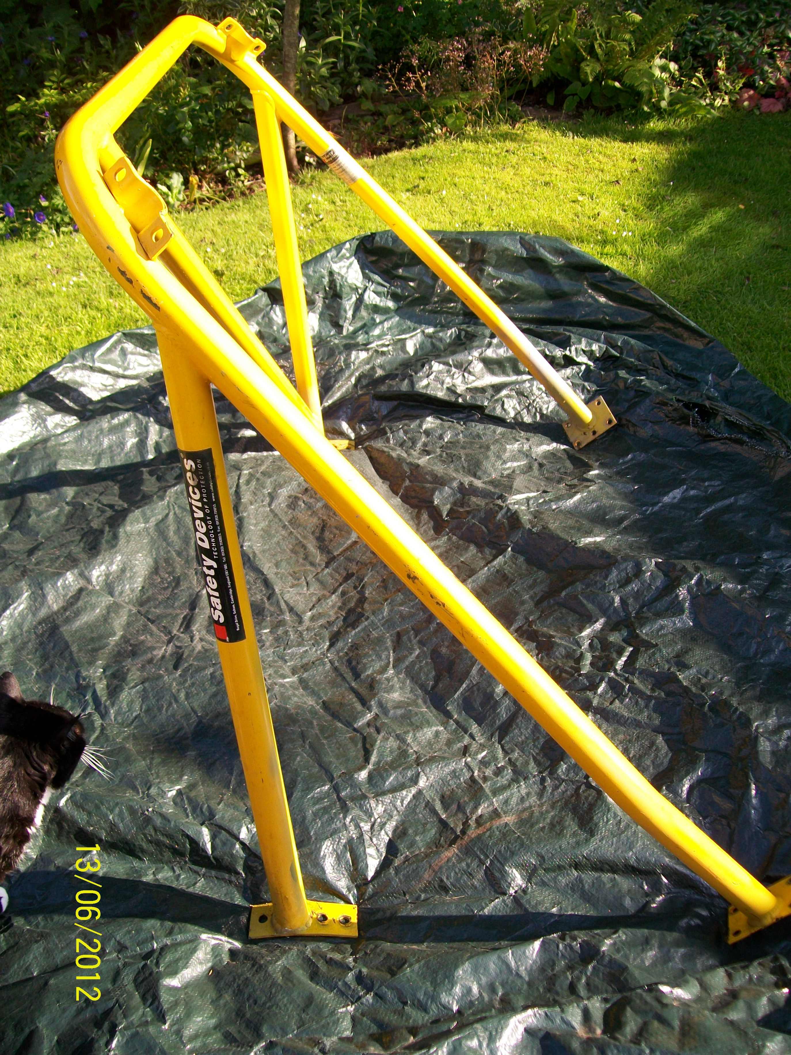 Safety devices rear cage with fixed diagonal. Has been fitted to car for a short time. (not rolled :) )
