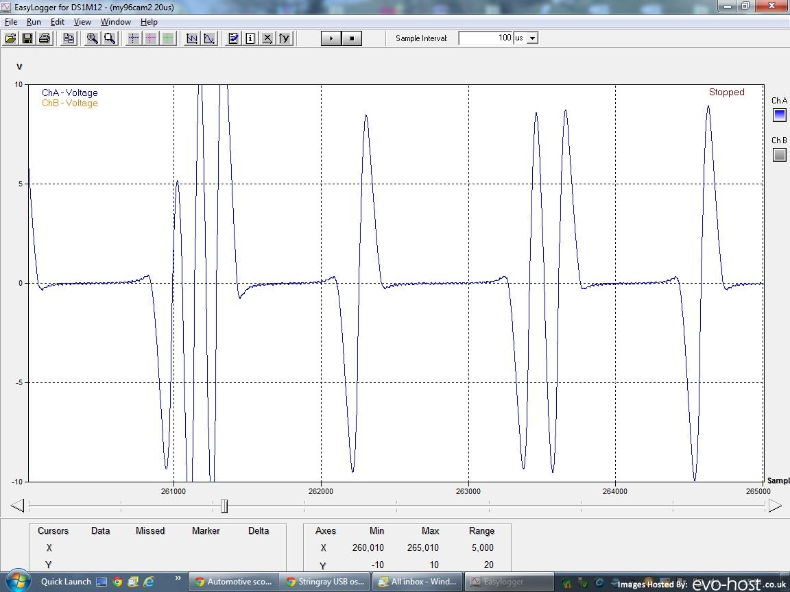 Stevie - that is interesting. Do you have any screen captures? ah - just two channels, Damn. There is a world of difference from two to four channels in cost. Perhaps I should just have a rethink on what I really need. Mine is just one option. If you google usb scope there will be 4 channel or more versions of different makes. I do rarely use mine, and because of that the logging software isnt perhaps as easy to use as I would like, but it's not bad really. 9.85 @ 145mph