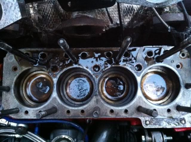 Turbo needs a rebuild looking at the snail outlet. the oil in the bores and on the deck is likely to have come of the head when you lifted it of..