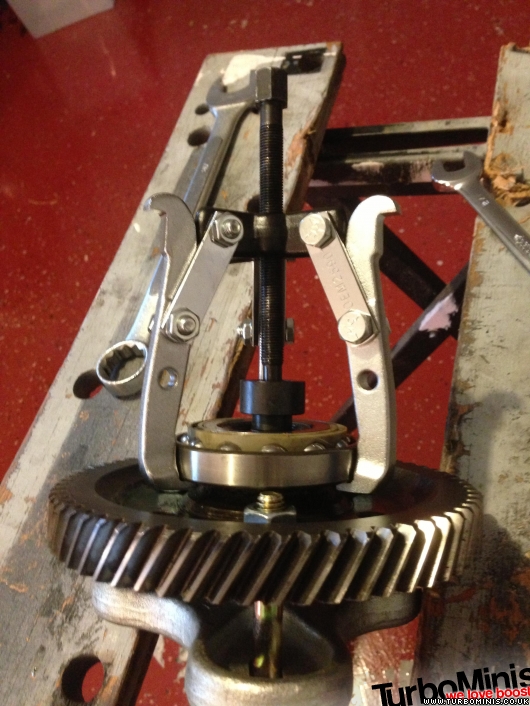 Alright Gents, Thanks for all the suggestions and help :) I did look at my grinder, and then I looked at my half built gearbox and block on the bench, then looked at the rain outside.... Not wanting to grind in doors near the new build, and whilst waiting for the rain to stop I realized that the standard outer race can be refitted fairly easily the wrong way around complete with ball races, thus giving a shoulder to pull on. The only trouble was that you have to remove the crown wheel retaining bolts first, which means you then have to have some thing for the 3 leg puller to react against in the center. I spotted my flywheel puller and hey presto cleanly removed a very stuborn inner race (which has been is place since 1979, but only 27k miles box)....although did go with quite a "crack" initially. I actually think the bearing could be reused in a standard application, as still seems smooth and happy, All in all quite pleased with my self lol:) Ps like all the other ideas, especially the tyre levers / exhaust clamp, the chisel method has always been my prefererred but this seemed quite clean even as a last resort in this case. Also I think if I had a short peice of round stock that would fit inside the ID of the inner race this would also be a suitable reaction point, for future reference. Cheers Brocky Main Build