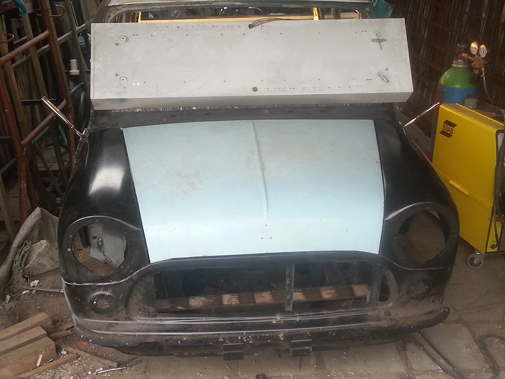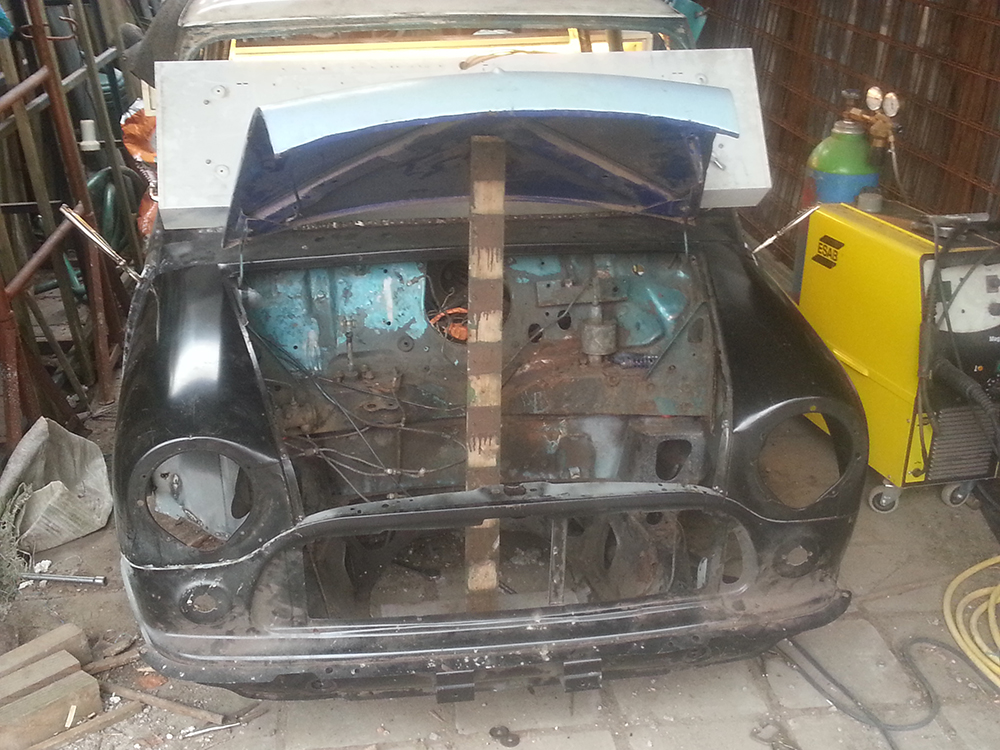 when fitted my front end i welded the front panel to the wings before fitting. the wings can only fit in one place on the front panel so you can then align the wings to the a labels without it bolted to the subframe and see how front out the holes are from lining up. Had that in mind to but was then thinking that the hole nose would sit croucet ( eum not straight) becous I have a gap that gows from 0 to 1.5 cm on 1 side and a gap from 0.5 on the other side. Pic is just a test. If it comes up ill take some in 20 minutes. you can do anything if you set your mind to it...