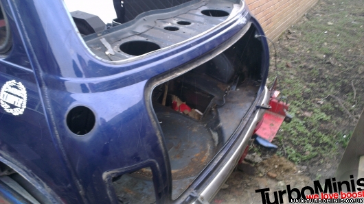 The rear seat overhang and the bins are worth cutting out and keeping. Some one is always after those to put a car back to normal lol The full boot floor and half rear panel are going on John's clubman. On 11th Feb, 2015 robert said: