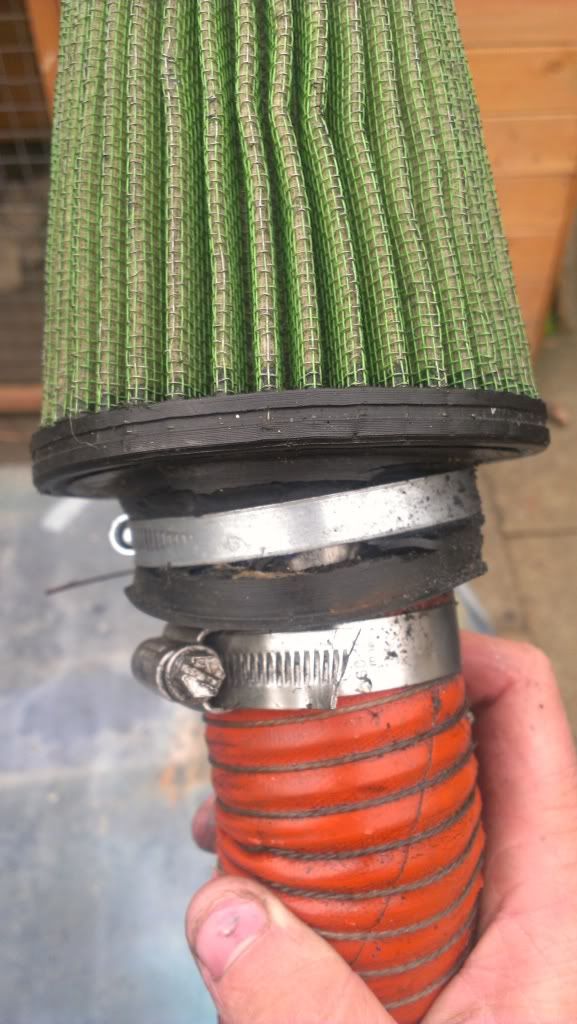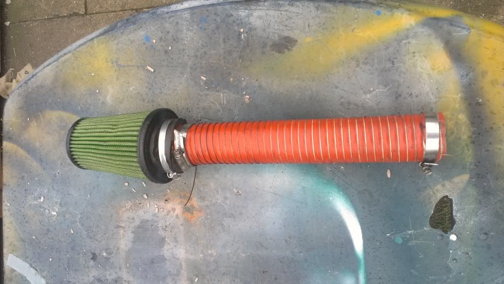 Have this lying about, bought from avonbar, it's metro turbo size, however I have it bodged to some 52mm samco piping, when used with my gt20, the piping it perfect length to sit the filter in the gap between the wiper motor and rad.the rubber has split on the filter, but the jubilee clip clamps higher than the split, so is airtight.