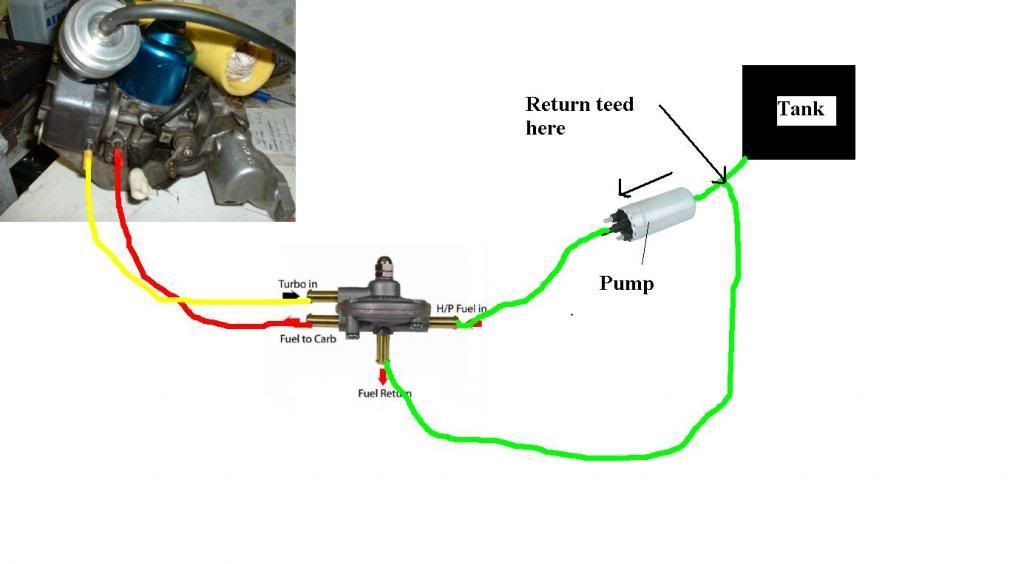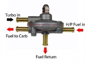 With the adjustment nut at the top there are two pipes out of the regulator directly above each other, bottom is fuel to the carb, top is the boost signal from the plenum Yeah that's how it's set up although fuel is coming through thr return is this correct ? |