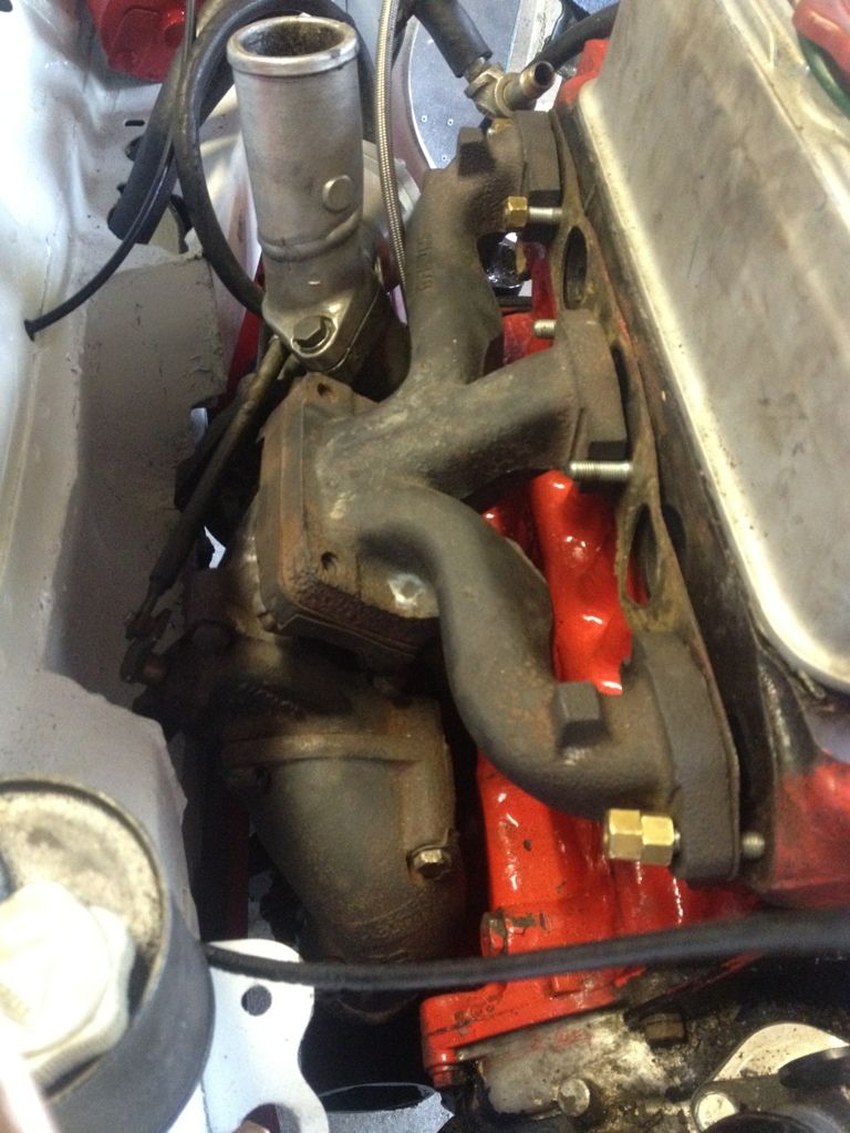 Jesus, I can see how bent the stud is. Can you get an inlet manifold in between the exhaust flanges, if you can I'd just open out the stud holes. If not, the manifold is probably knackered :/ On 26th Jan, 2012 Tom Fenton said: