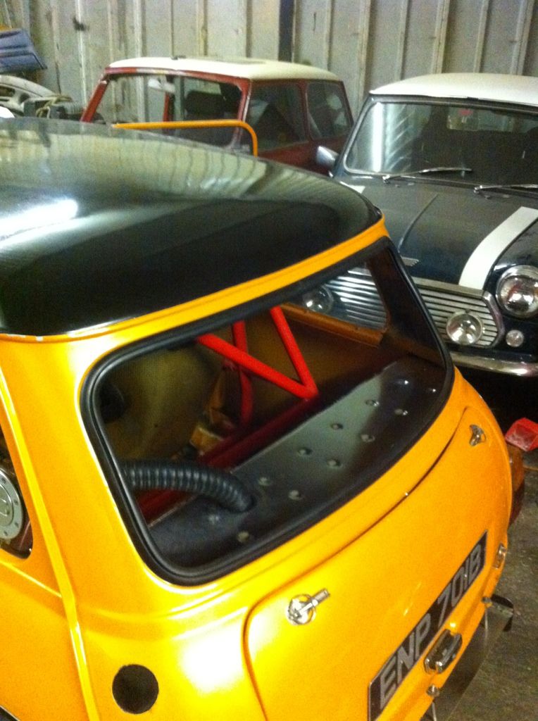 Only building for drag ,track days and possibly road, mot wise a solid boot floor is needed, track days all they seem bothered about is sticking a microphone up your exhaust, drag they only seem to want your seat and battery to be bolted down, and in all cases the fuel tank closed off from the cabin.bracing the shock tops off the rear of the cage with 1 1/2 tube, to be honest having weighed what came out vs samples of what I'm putting back I will be lucky to save 2/3kg overall but its very important to me to make sure its as rigid as std if not more so. On 18th Oct, 2013 apbellamy said: