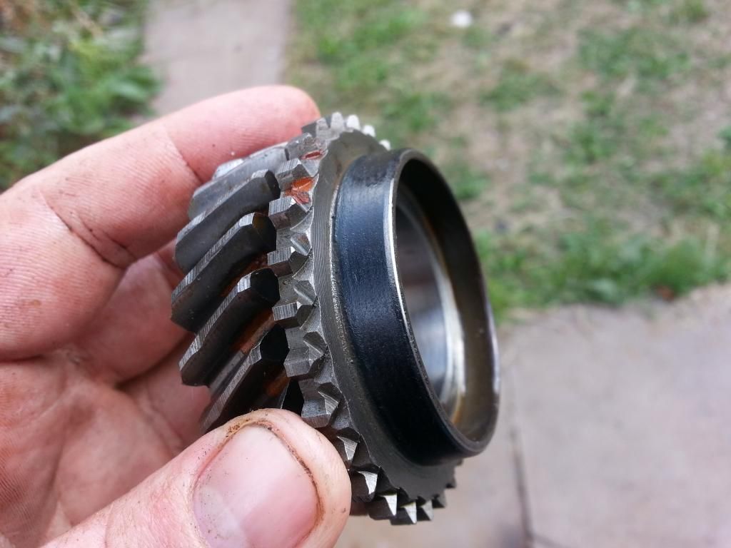 looks like a JKD item Helical? Really? Id say that is discolouring due to moisture. This happens when the the gears have been sat in dirty old oil and been allowed to sit for a prolomged time. What does the resrt of the gearbox look like? On 26th Oct, 2004 TurboDave16v said: