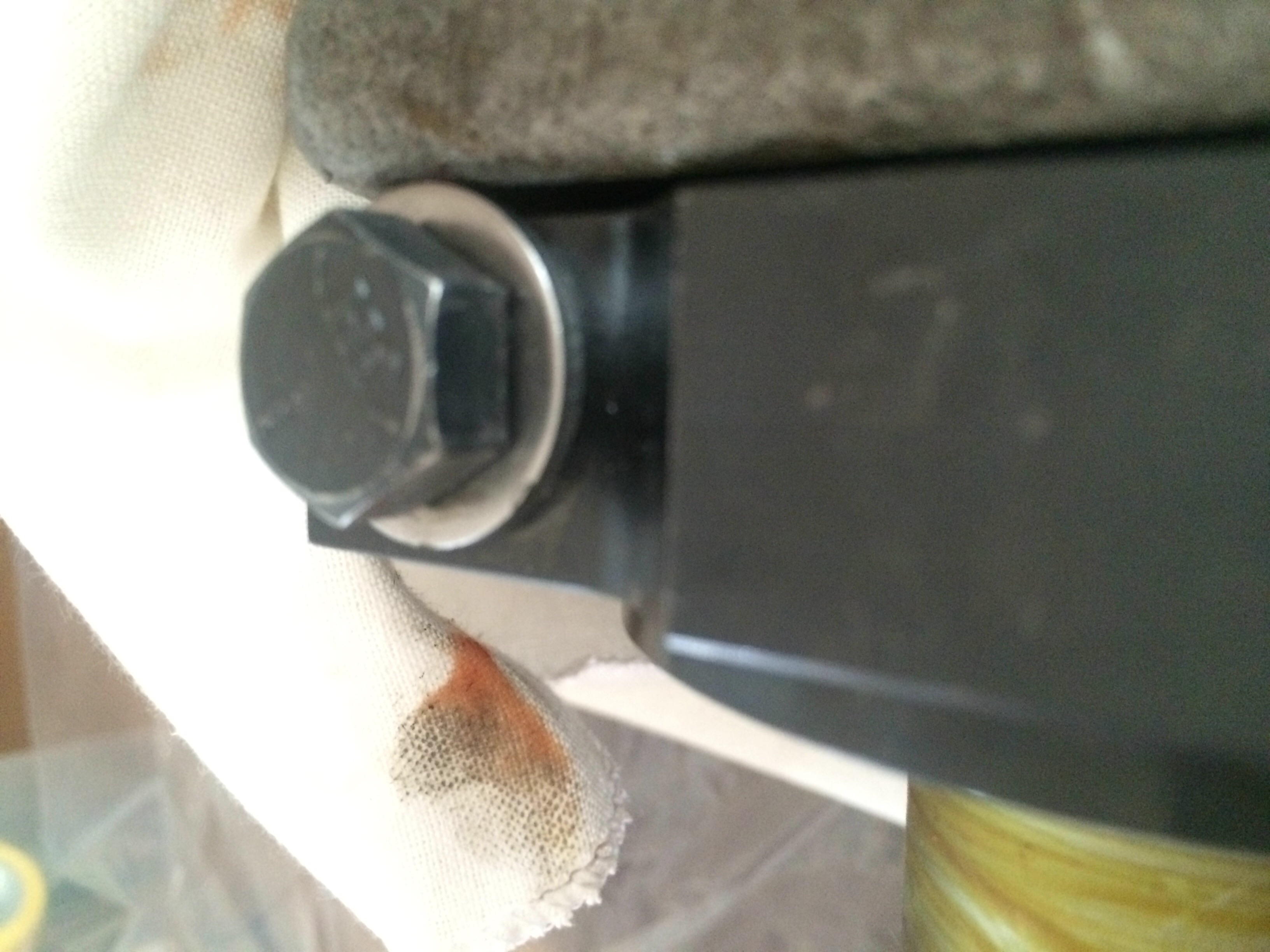 Going by the photos alone. those washers don't seem the right sort at all for the bolts used.