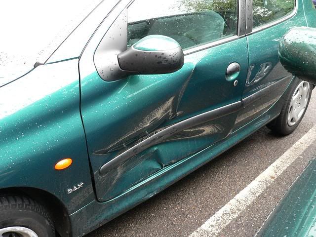 main prob i have now is the car, mine looks pretty minor the damage to mine is on the hard part ... the osf corner, the bumpers bent the bumper support is bent, the foglight, the headlights smashed, indecators smashed and wings slightly bent, worst of all the car wont start hardly at all now and theres a strong smell of diesel, i have driven it home but can taste it and feel it in my skin its nasty