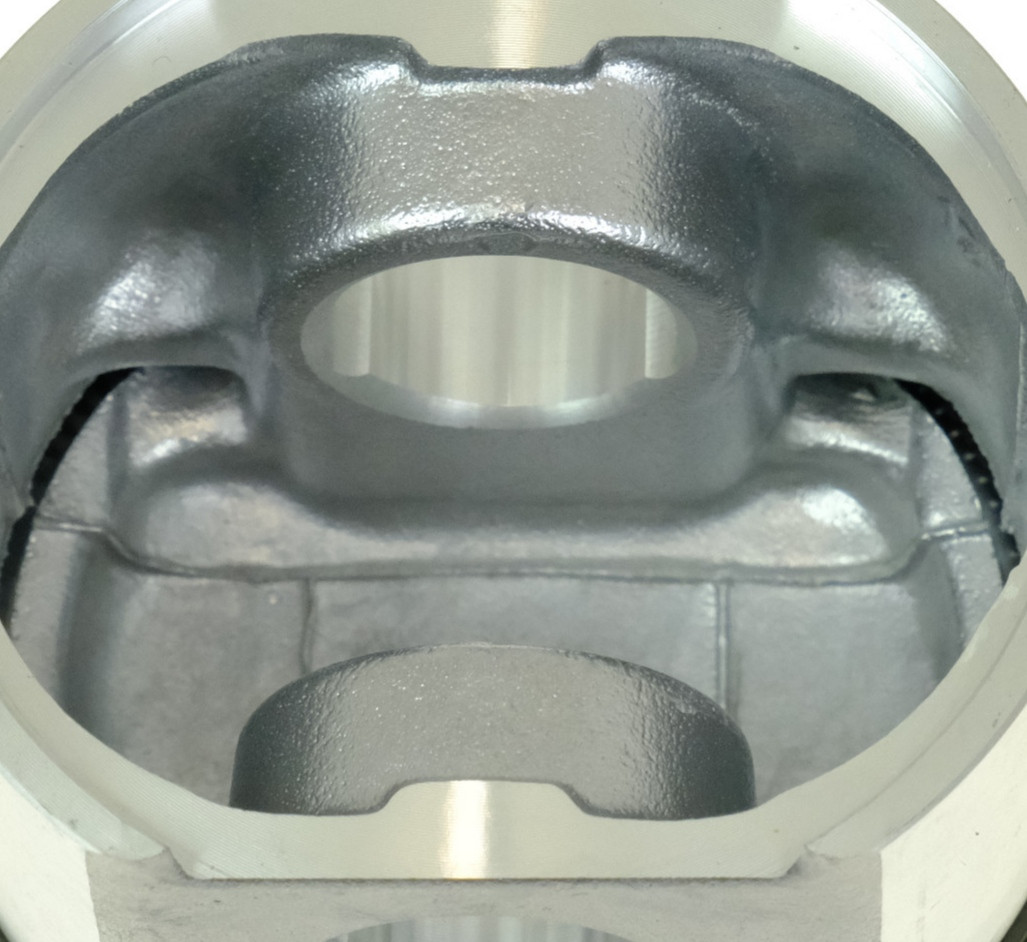 I'm noticing that the 21251 pistons, despite having a very large groove for the lubrication ring, have reinforcements extending from the center of the wrist pin that support the piston skirt, stiffening the area. It's not that the skirt is left hanging in the air with little support, as is often said. I suppose this design should keep things in place and significantly improve lubrication against the cylinder wall